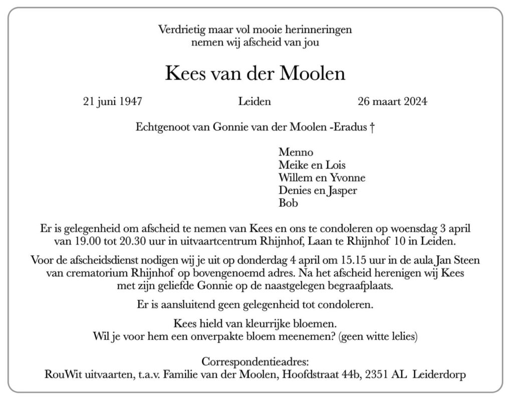 In Memoriam: Kees van der Moolen (21 juni 1947-26 maart 2024)