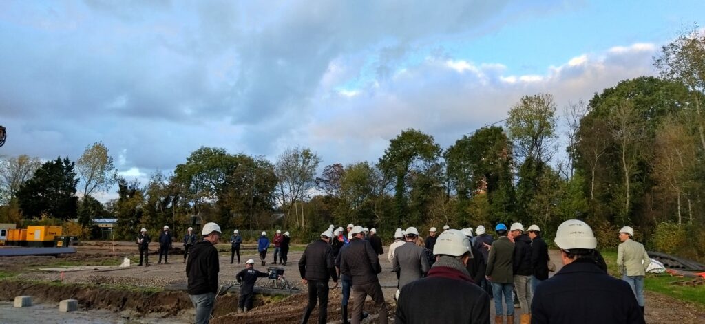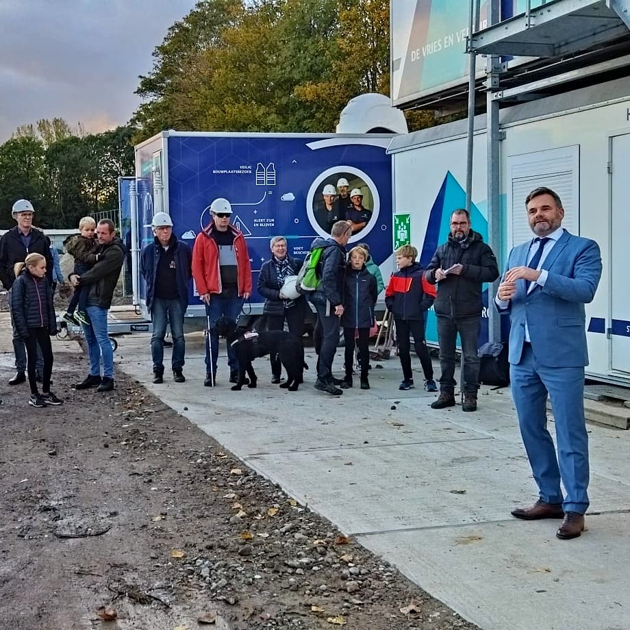 In 2023 zullen naar verwachting de eerste zwemmers en schaatsers terecht kunnen in een gloednieuw sportpaleis op ’Sportboulevard de Vliet’. Onze eigen voormalig olympische kampioene waterpolo Iefke van Belkum sloeg vanmiddag in het bijzijn van zo’n vijftig belangstellenden de symbolische eerste paal.
