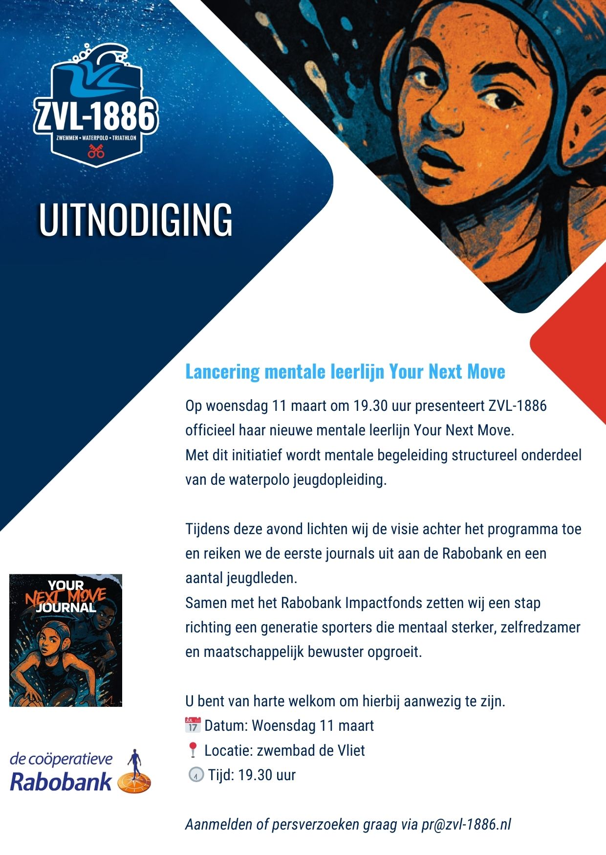 ZVL-1886 maakt mentale training een vast onderdeel van de jeugdopleiding waterpolo. Op woensdag 11 maart om 19.30 uur presenteert de Leidse vereniging officieel de mentale leerlijn “Your Next Move”. Daarmee neemt de club mentale kracht net zo serieus als techniek en conditie. Eerder die avond ontvangen de eerste jeugdleden hun persoonlijke journal; in de dagen daarna volgt de rest van de jeugdafdeling.